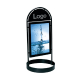 Textskivorna är vändbara och lätta att byta. Plats finns upptill för logotyp.